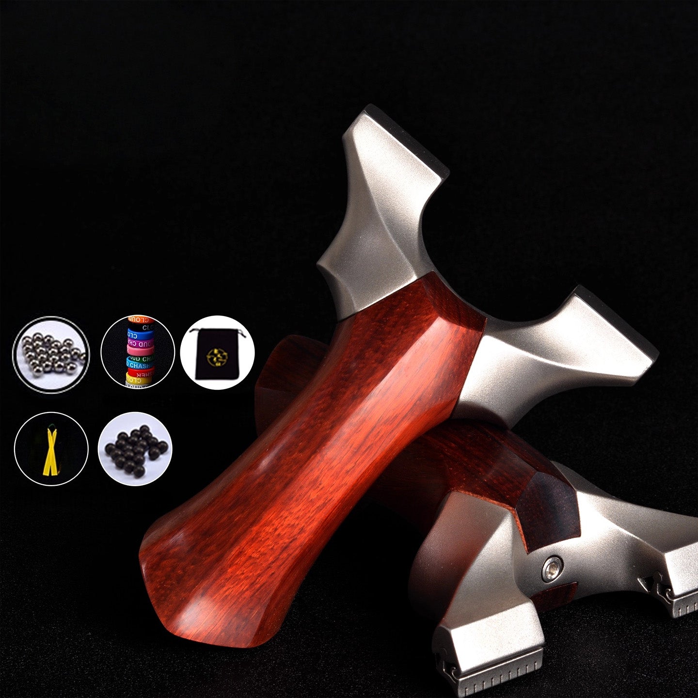 本体は高品質630ステンレス鋼製の弓頭+木製ハンドルで構成され、軽量かつ頑丈で長持ちします。ゴムバンドには特殊高耐久ゴムを採用し、優れた耐摩耗性と反発力を備え、繰り返し使用しても性能を維持。安全設計で安心してご利用いただけます。