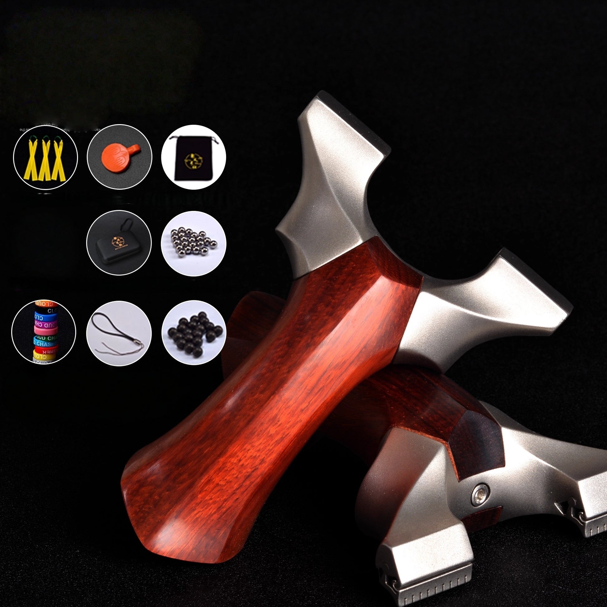 2. 究極版:本体、高品質ゴムバンド10本、スリングショット収納ボックス1個、スリングショット収納袋1個、滑り止めゴムリング10個、シリコンターゲット2個、脱落防止ストラップ1本、鋼球(8mm)400粒、粘土弾(8mm)600粒