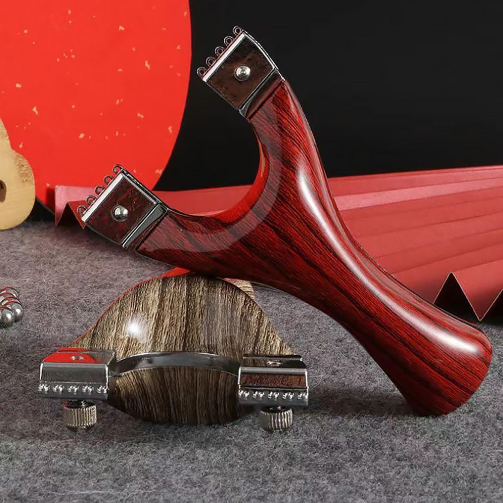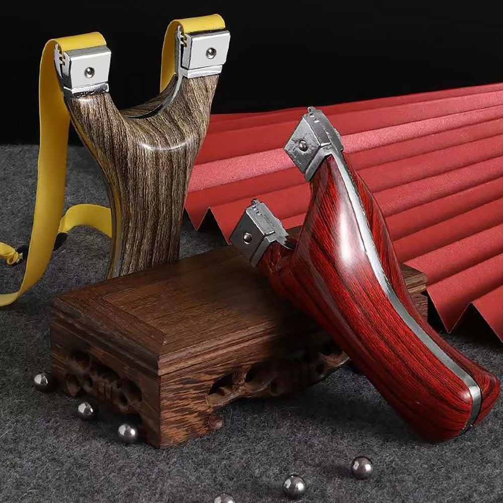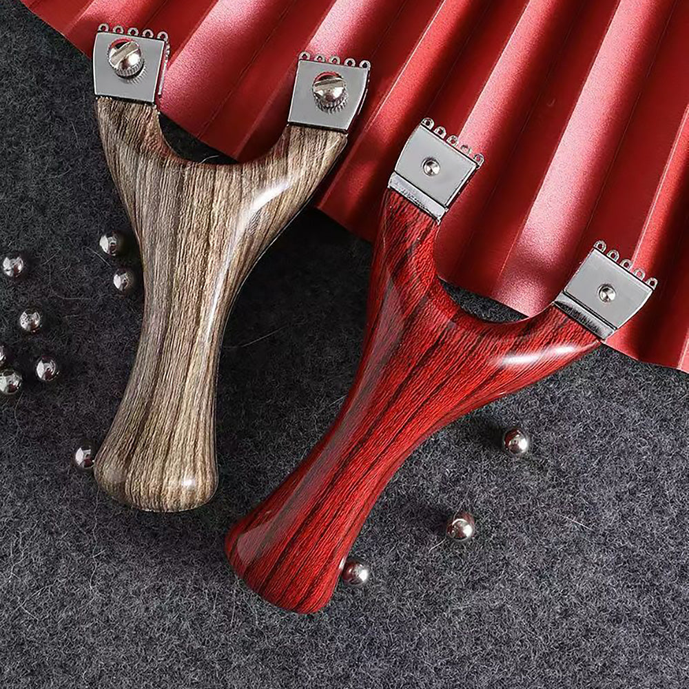 フレーム部分は高品質な合金を採用し、ABS樹脂による木目調パッチを組み合わせたデュアル構造。軽量でありながらも高い耐衝撃性と耐久性を実現しています。ゴム部分には伸縮性と耐候性に優れた専用の丸ゴムを使用。長時間の使用や天候に左右されない性能で、安定したパワーと飛距離をキープします。