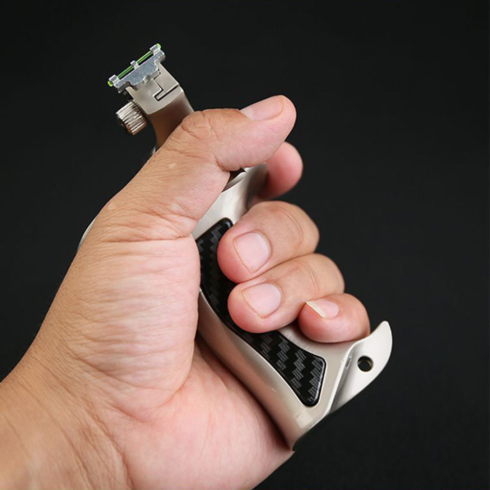 握り部分は指の形に合わせた曲線を採用し、親指と人差し指の間を自然にカバー。安定したグリップ感を実現しました。フラット形状のゴムバンドはパワフルな推進力と弾性を両立し、真っ直ぐで正確な弾道を実現。初心者から上級者まで、快適に使える工夫が詰まっています。