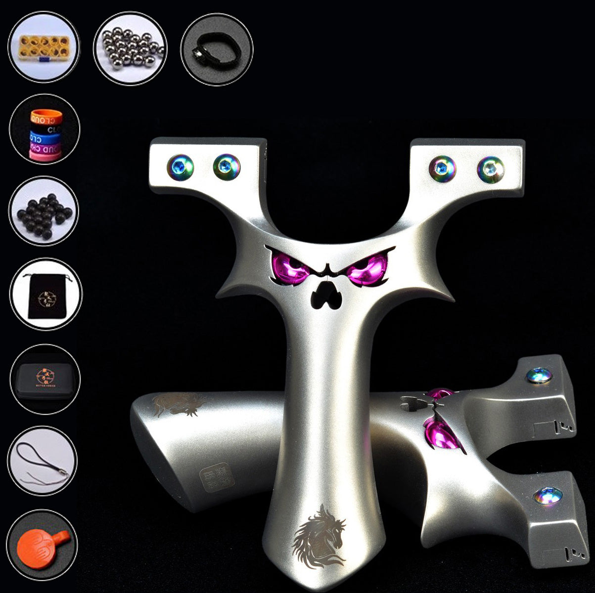 2. 究極版:本体、高品質ゴムバンド10本、スリングショット収納ボックス1個、スリングショット収納袋1個、滑り止めゴムリング10個、8mm鋼球400粒、8mm粘土弾600粒、シリコーンの的の中心2個、脱落防止ストラップ1本、マグネットリング1個