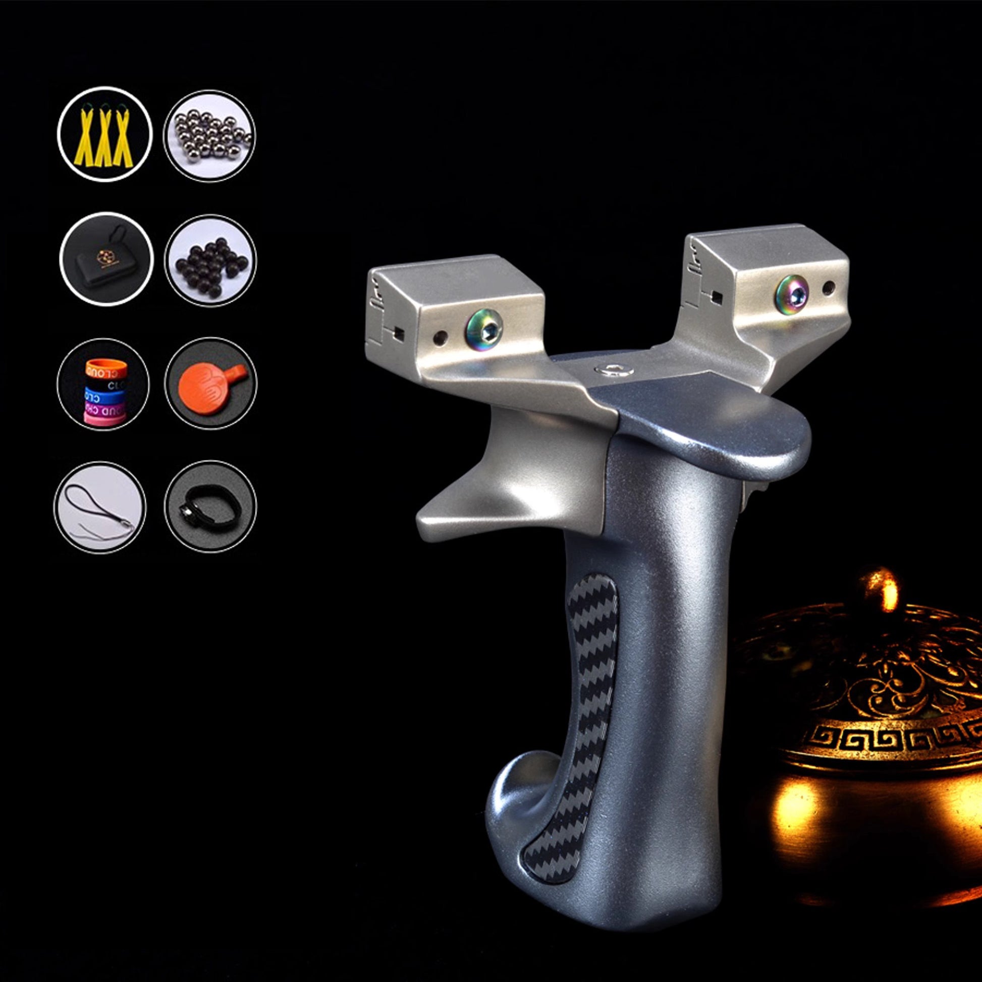 1. 入門版:本体、高品質ゴムバンド1本、スリングショット収納袋1個、滑り止めゴムリング10個、8mm鋼球100粒、8mm粘土弾300粒