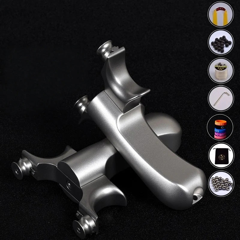 1. 入門版:本体、高品質ゴムバンド1本、スリングショット収納袋1個、専用レンチ工具セット、ゴムバンド固定帯20m、鋼球(8mm)100粒、粘土弾(8mm)300粒、滑り止めゴムリング10個