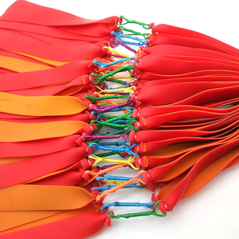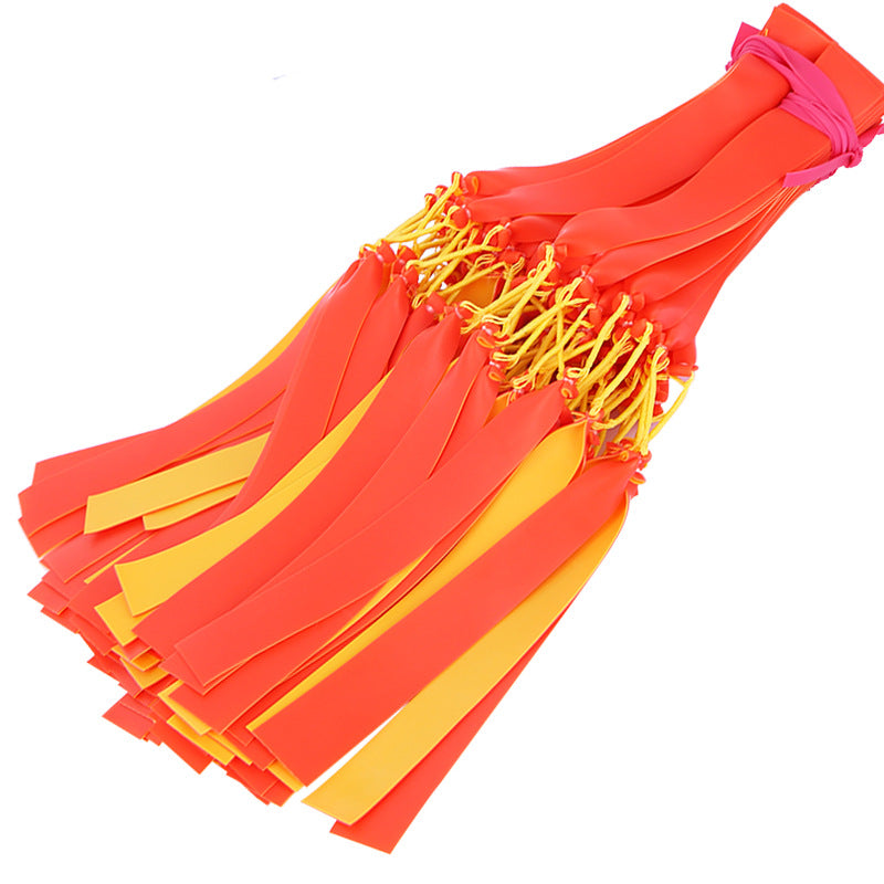 高弾性厚手ゴムを採用し、優れた伸縮性と耐久性を兼ね備えています。レーザーカットによる精密成形の袋口設計で、遠距離投擲時の安定性と飛行性能を向上させます。