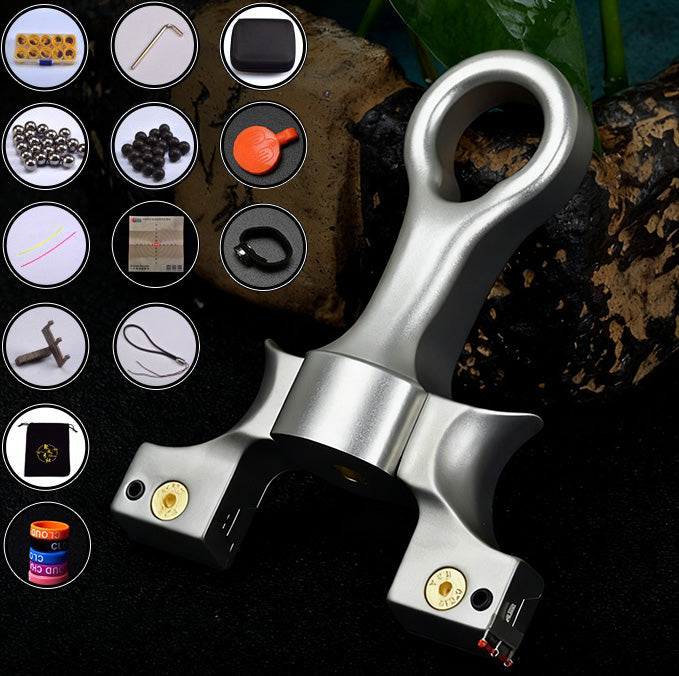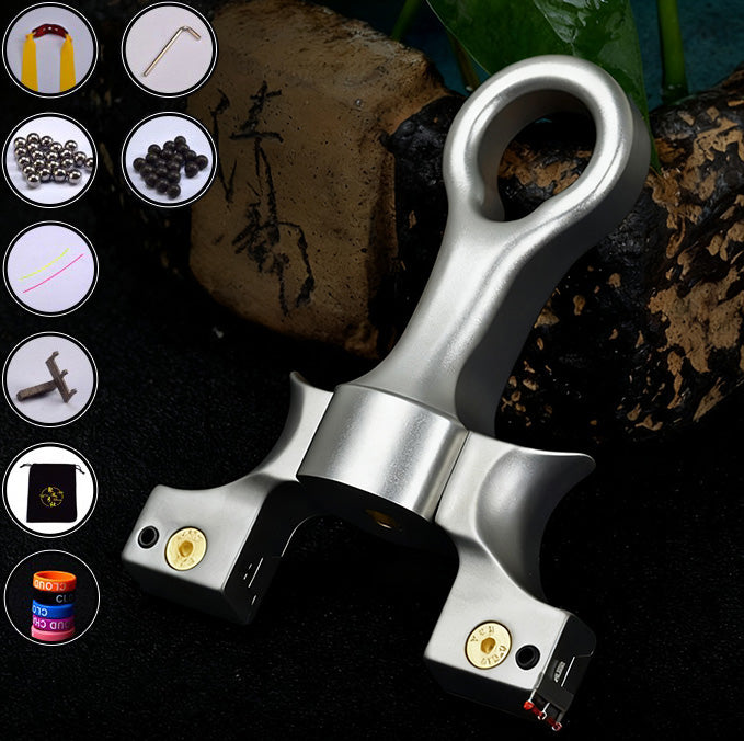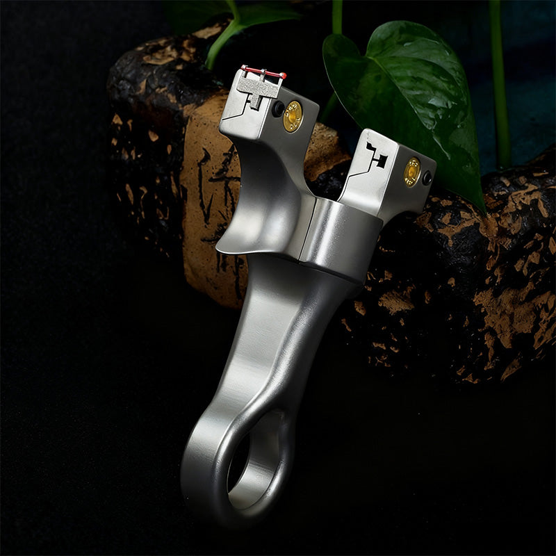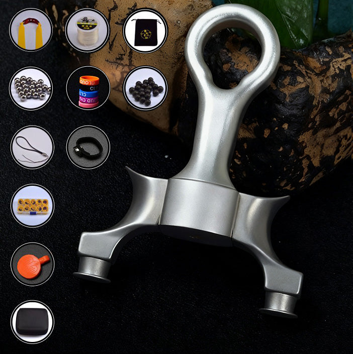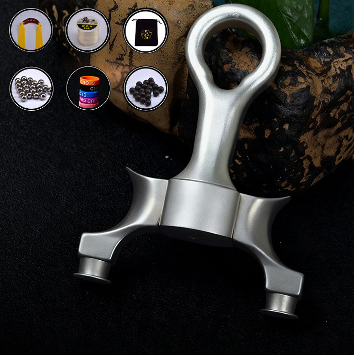 本体はチタン合金製の弓頭を採用し、ハンドルは航空アルミニウム製です。軽量かつ頑丈で、長期間の使用に耐えます。ゴムバンドには特殊高耐久ゴムを使用し、優れた耐摩耗性と反発力を備え、繰り返し使用しても性能を維持します。安全設計により安心してご使用いただけます。