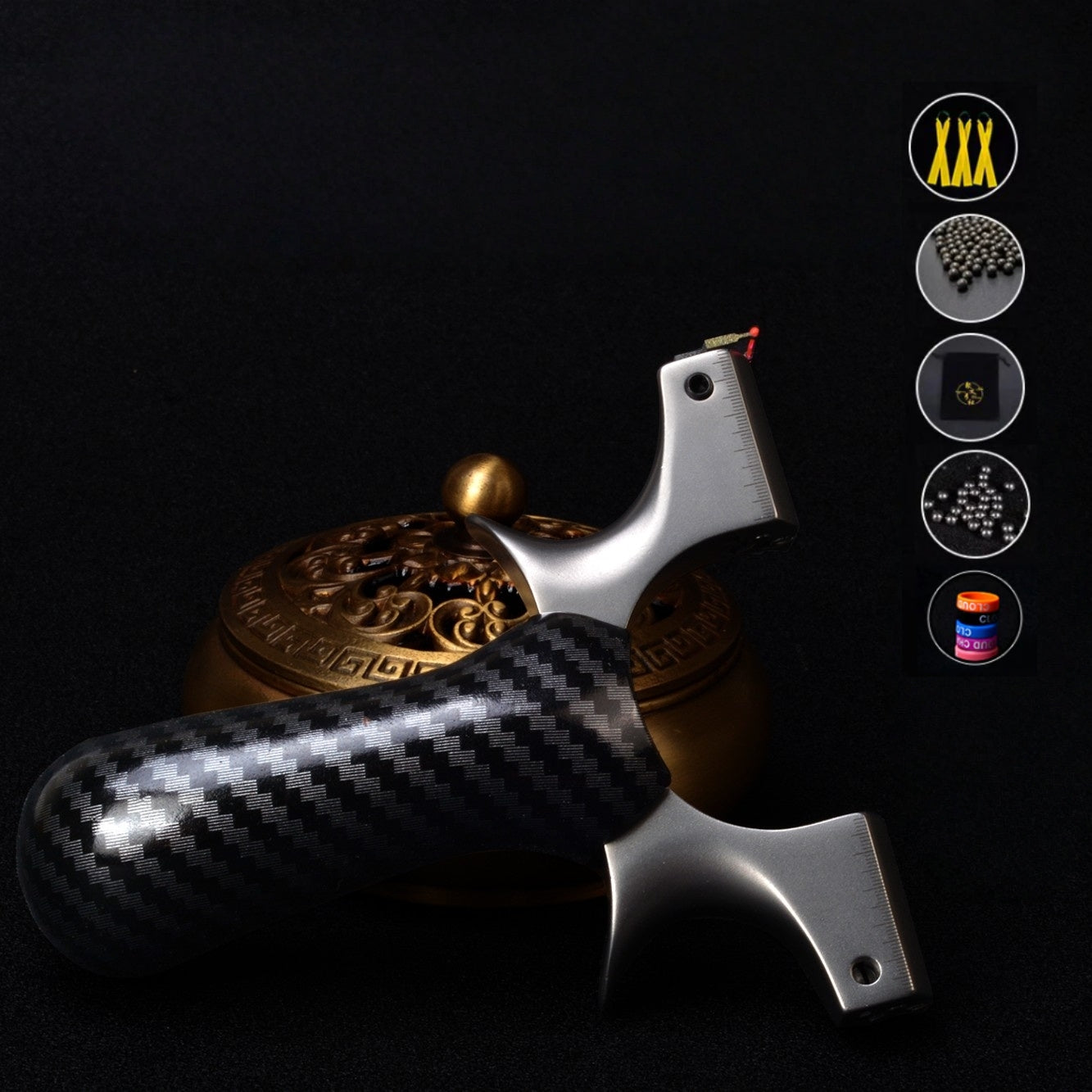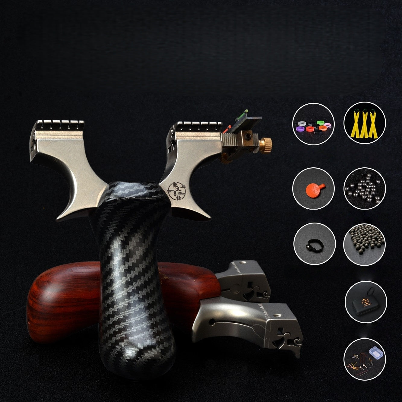 弓頭はステンレス鋼製で、ハンドルは木製ハンドルまたは輸入ナノ表面カーボンファイバー処理ハンドルから選択可能です。軽量設計でありながら堅牢性を兼ね備え、長期間使用に耐えます。ゴムバンドには特殊高耐久ゴムを採用し、優れた耐摩耗性と反発力を実現。繰り返し使用しても性能を維持します。安全設計で安心してご利用いただけます。