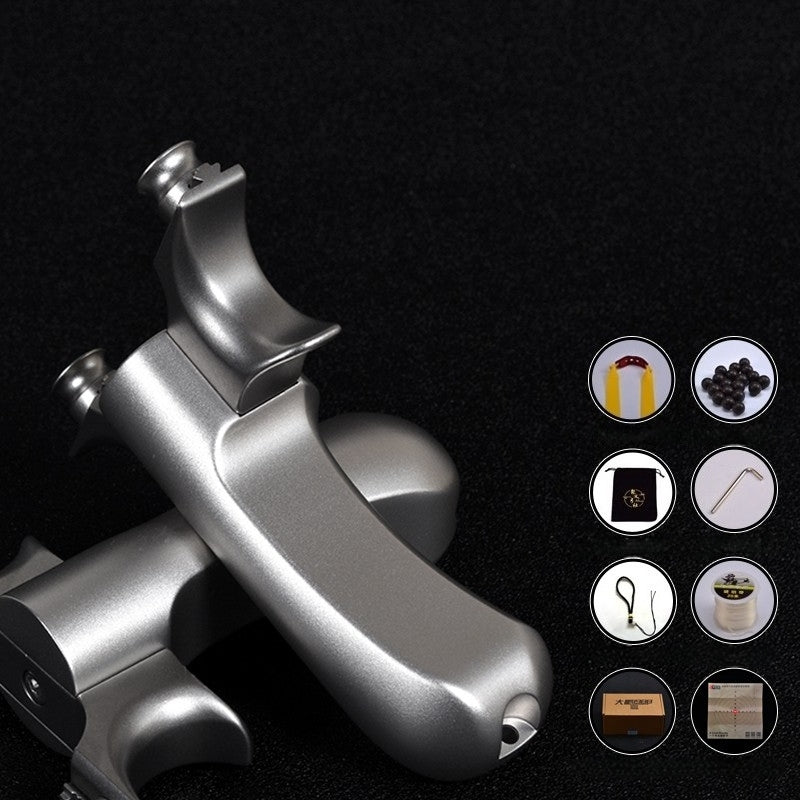 弓頭部はチタン合金素材、ハンドル部は高品質ステンレス鋼を採用、軽量かつ頑丈で長持ちします。ゴムバンドには特殊高耐久ゴムを使用し、優れた耐摩耗性と反発力を備え、繰り返し使用しても性能を維持。安全設計で安心してご利用いただけます。